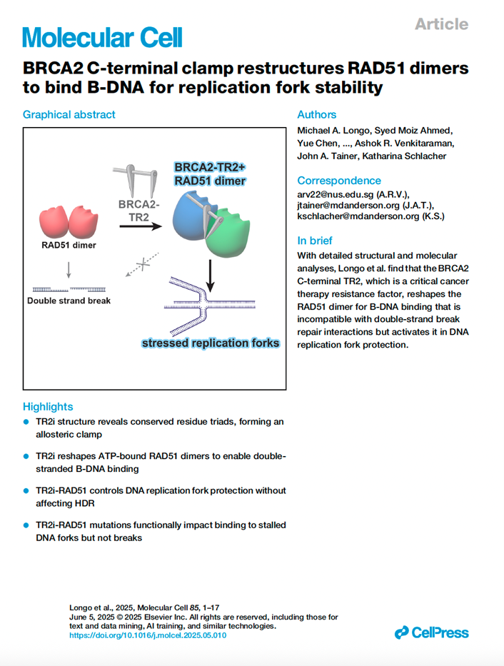 Michael A. Longo1 ∙ Syed Moiz Ahmed2,10 ∙ Yue Chen3,10 ∙ Chi-Lin Tsai1,10 ∙ Sarita Namjoshi1 ∙ Runze Shen1 ∙ Zamal Ahmed1 ∙ Xiaoyan Wang1 ∙ Rajika L. Perera4 ∙ Andy Arvai5 ∙ Miyoung Lee6 ∙ Li Ren Kong2,6 ∙ Wilfried Engl7 ∙ Woei Shyuan Ng7 ∙ Ziqing Winston Zhao7,8 ∙ Ashok R. Venkitaraman2,6,9∙ John A. Tainer1,3 ∙ Katharina Schlacher3,11
