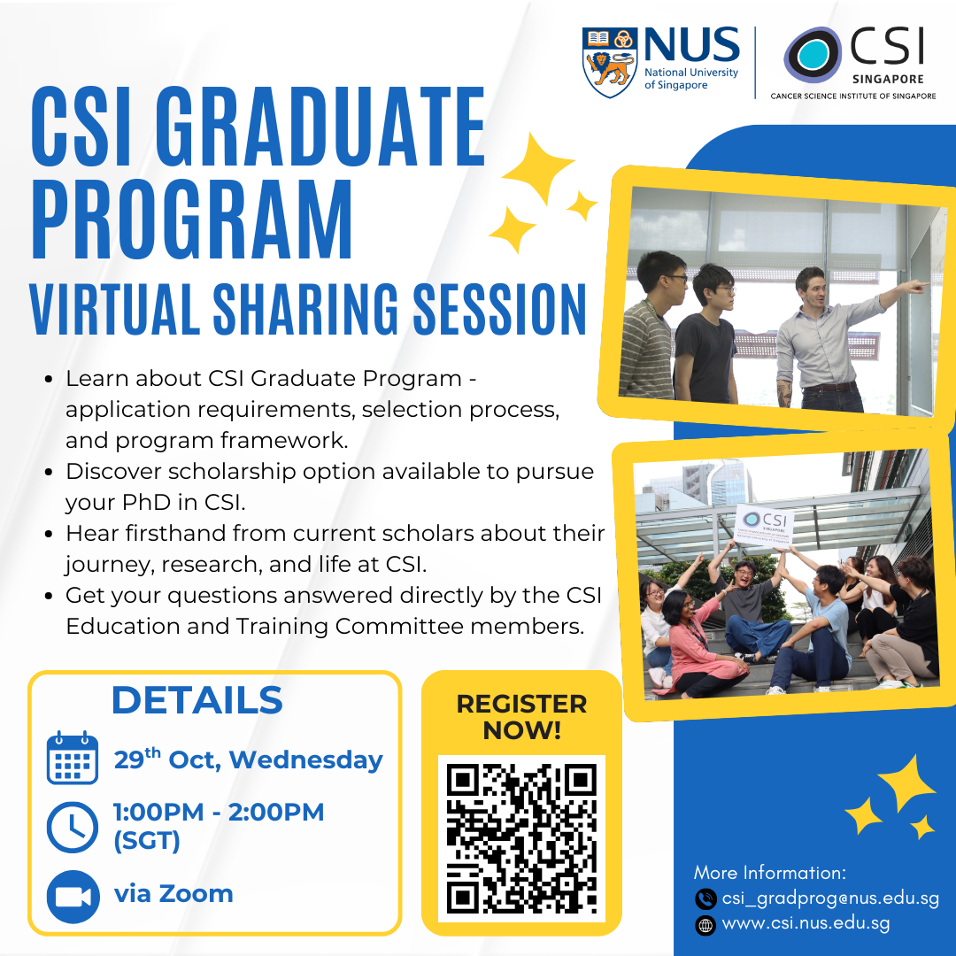 1:00 pm - 2:00 pm CSI Graduate Program Virtual Sharing Session – 29 Oct 2025 October 29 @ 1:00 pm - 2:00 pm CSI Graduate Program Virtual Sharing Session – 29 Oct 2025